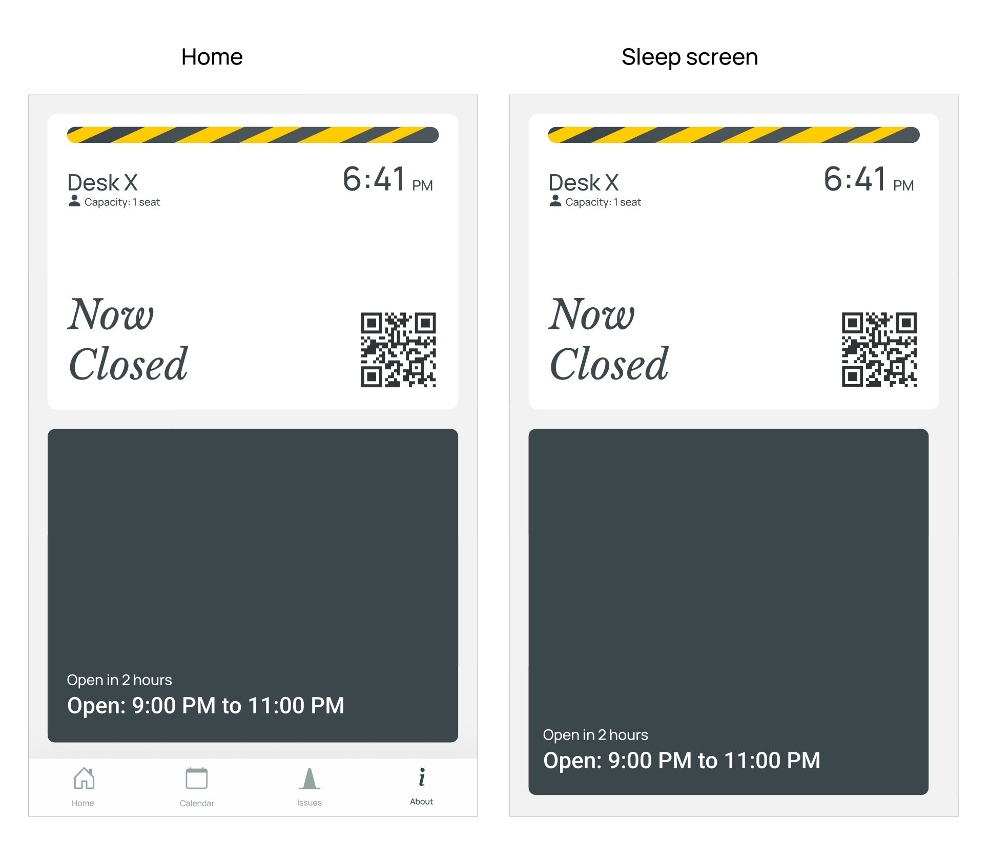 The update of the Room Display application with the new layout will be automatic, however it may take a while depending on the internet connection availability. If it takes a while, a manager can manually update it by accessing its settings menus.